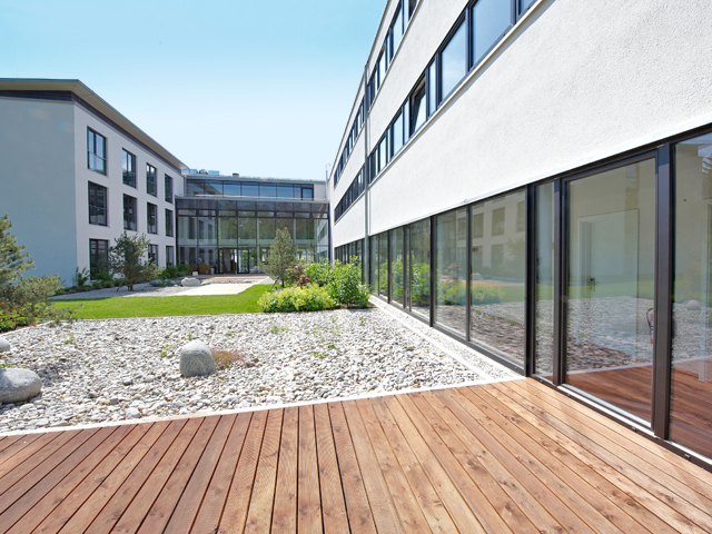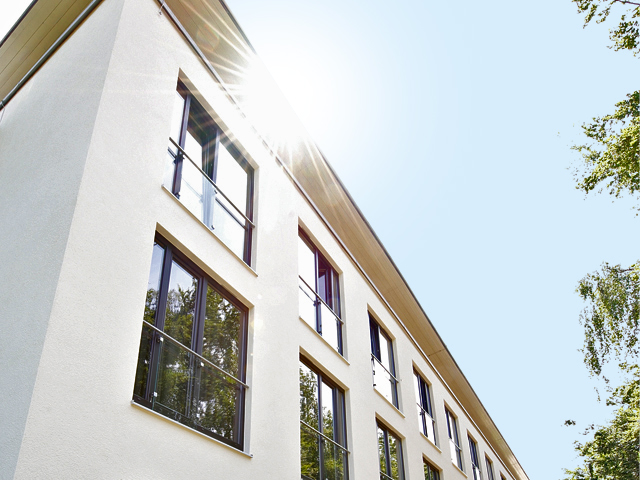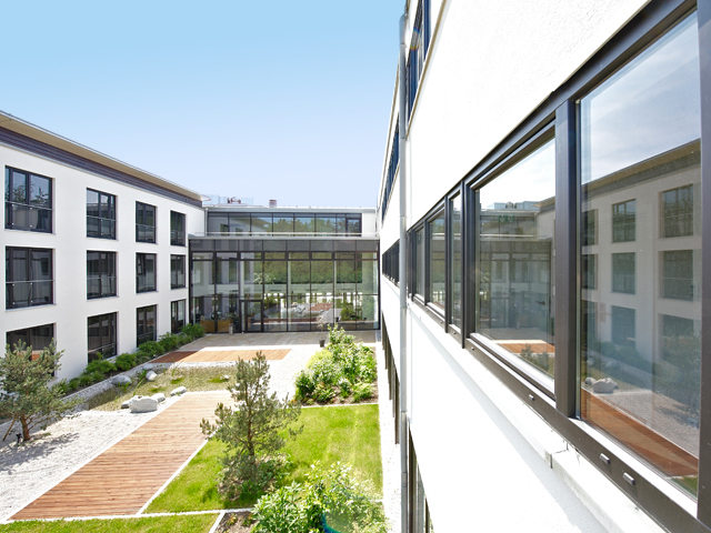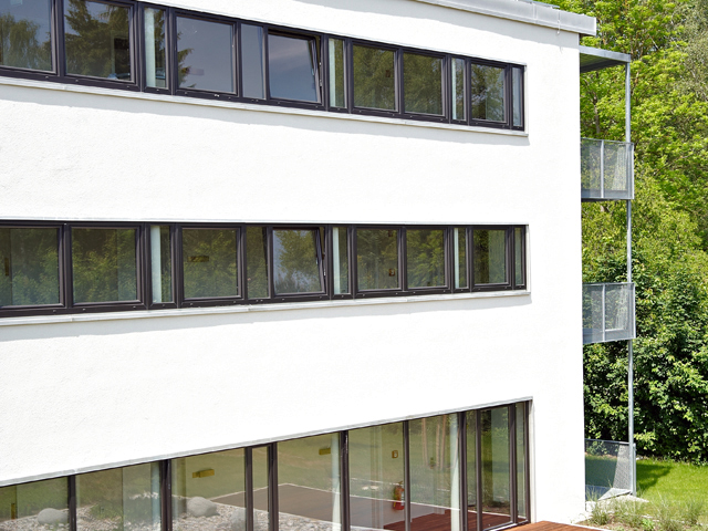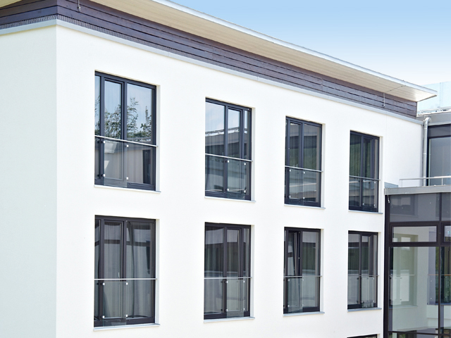 Невероятна елегантност, съчетана с прецизни материали – така се представя четиризвездният хотел >fürstenfelder<. С лъскавия си външен вид и фината повърхностна структура прозорците се сливат перфектно с архитектурата на комплекса. Сивият цветен основен профил се съчетава изключително добре с цвета графитено черно от гамата Архитектурни цветове.